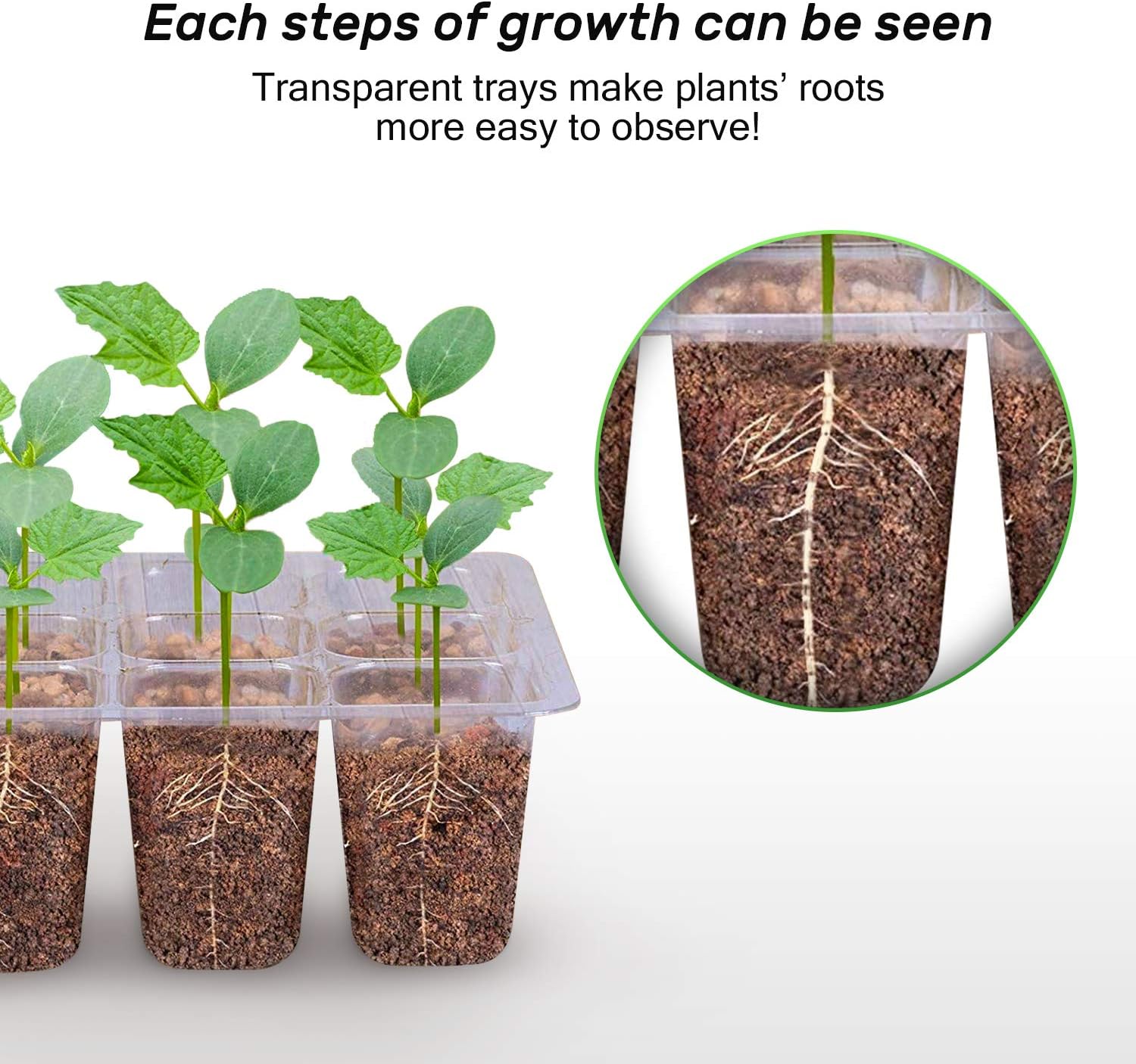Bonviee 12 Packs Seed Starter Tray with Drainage Holes, Reusable & Durable, Clear for Root Monitoring, Easy to Repotted Without Root Damage, 12 Cells per Tray