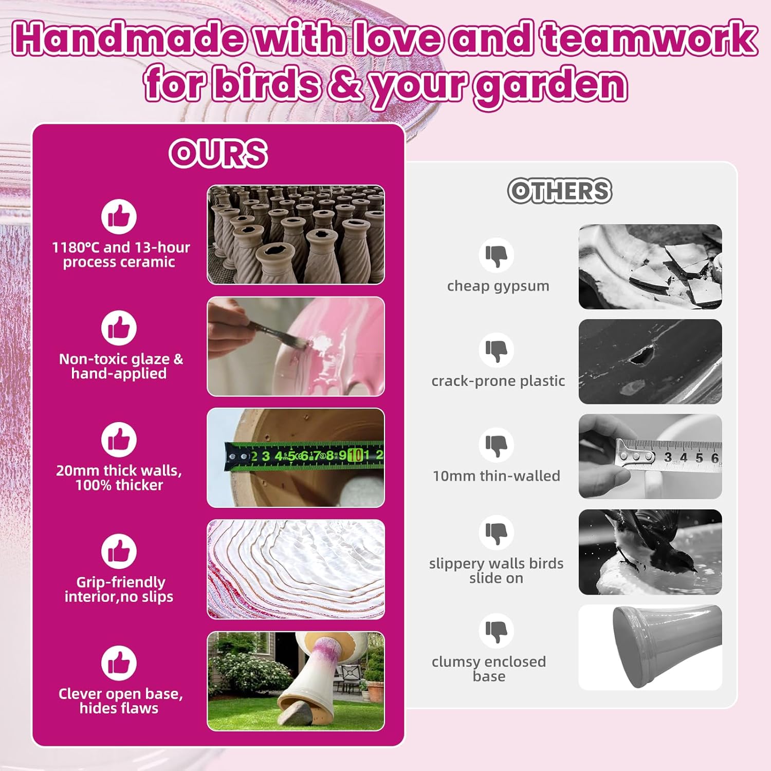 - Handcrafted with Love & Care: What appears as a simple bird bath is actually a labor of love - collaboratively crafted with human warmth that we now extend to our feathered friends