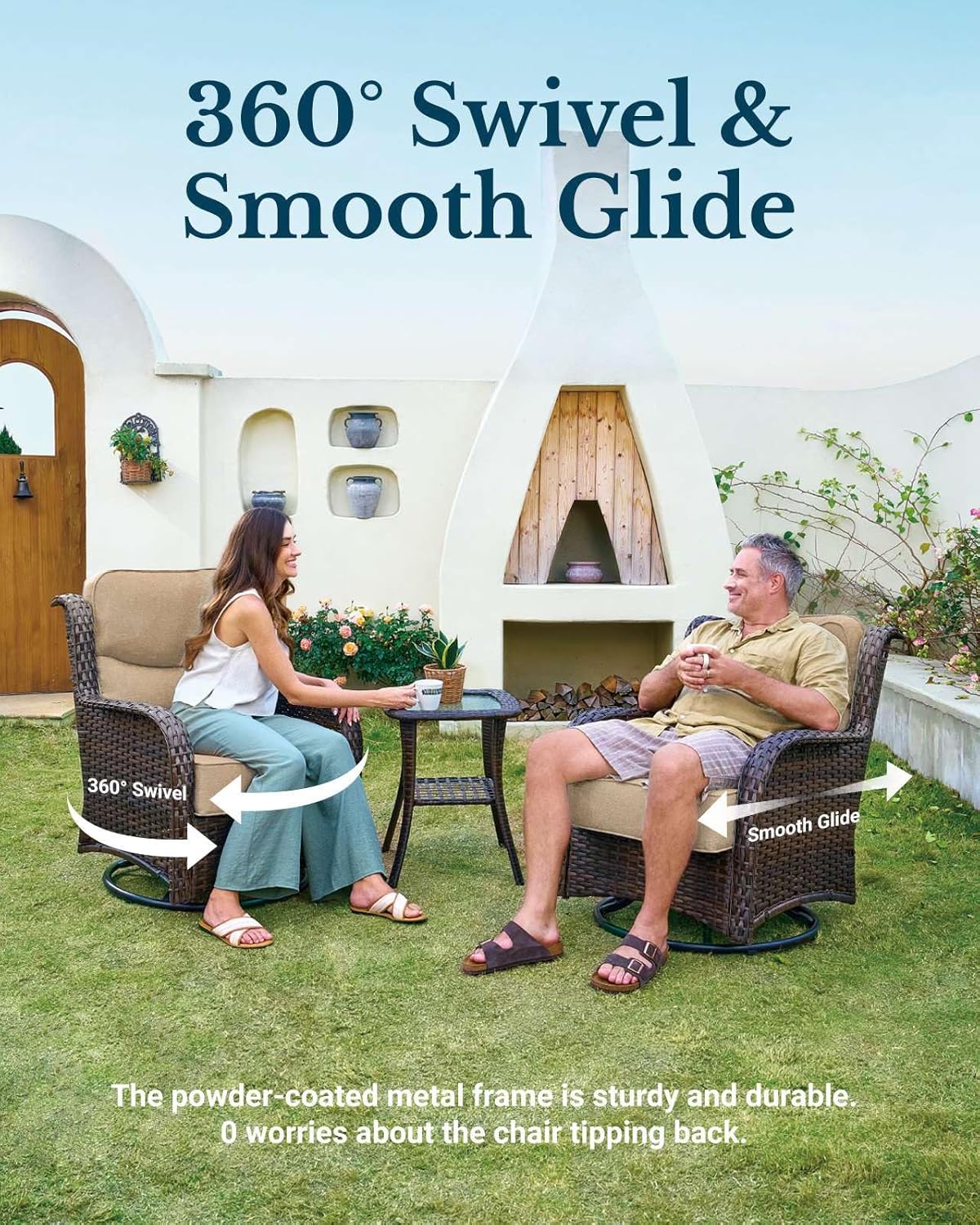 - Handwoven PE Rattan: Crafted with long, wide strands for a real wicker feel—just as elegant, but far more durable. Each piece carries the care of human hands and resists cracking, fading, and warping through sun, rain, and snow