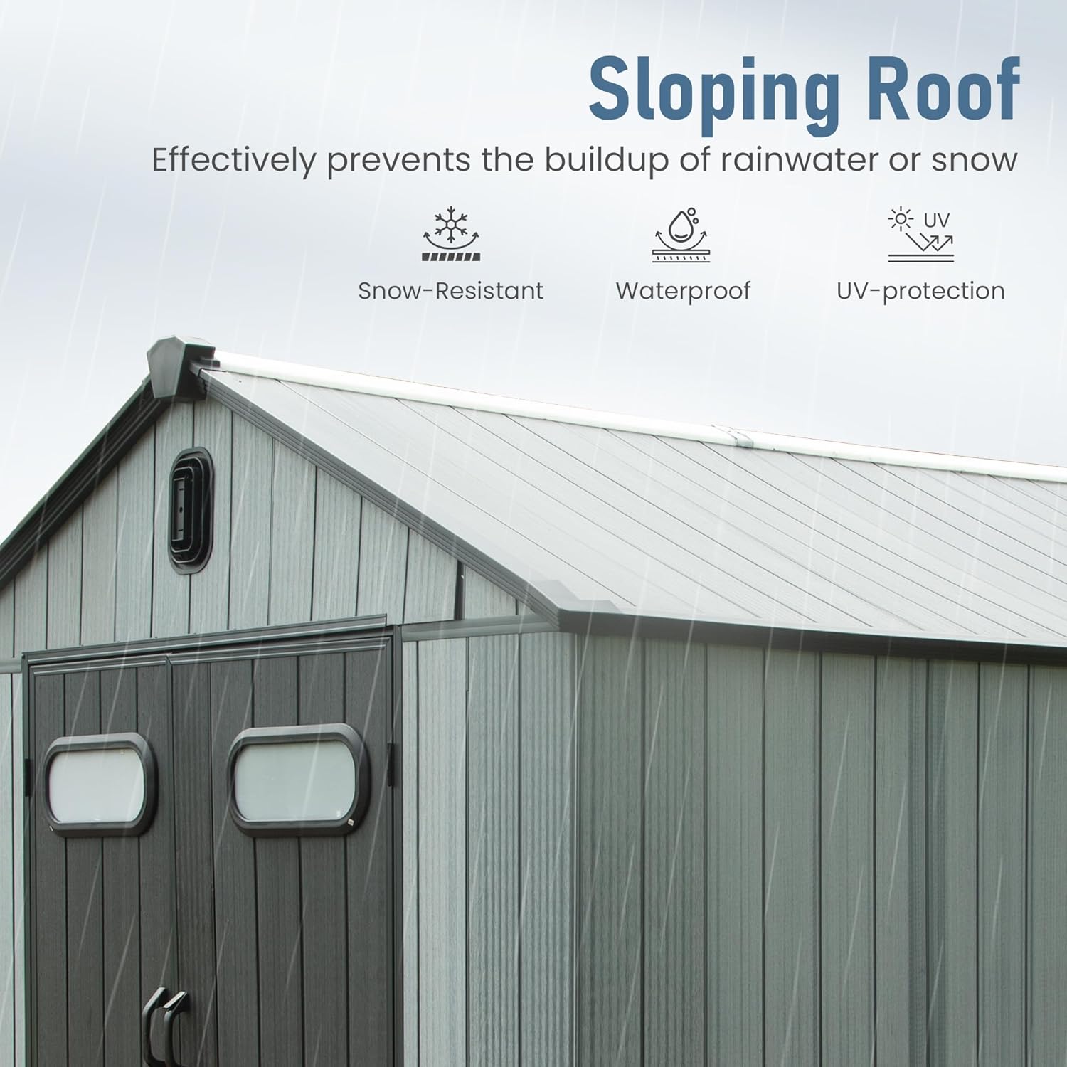 Domi 6x6 FT Outdoor Resin Storage Shed, All-Weather Double-Wall Storage Building for Backyard, Garden, Lawn Tools, Mower, Bike & Pool Equipment, Lockable Doors, Ventilated Roof, Grey
