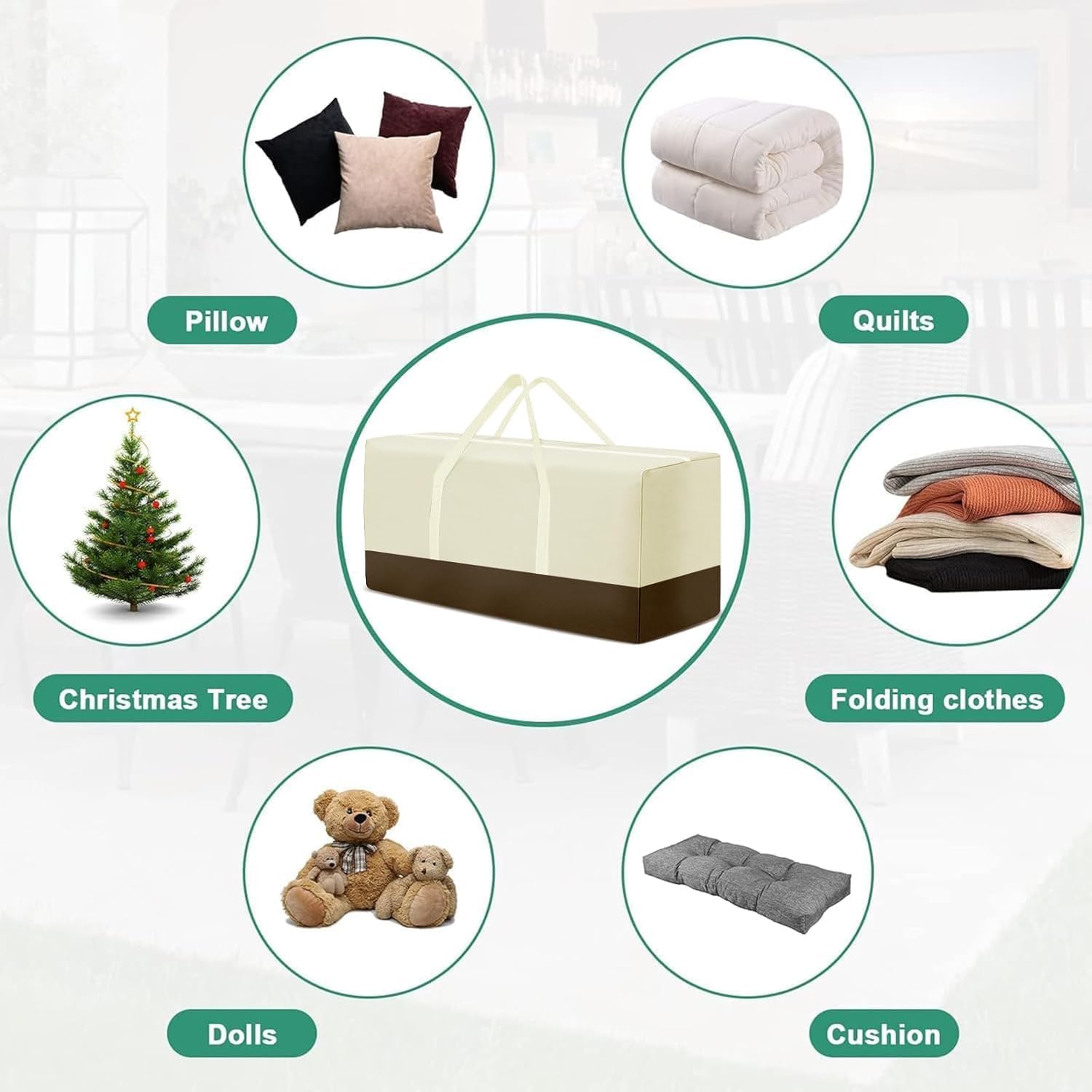 - 【Durable Material】 -High Quality UV of outdoor cushion storage bag Protected Weatherproof Oxford Fabric, Breathable and Lightweight, Inner Coating and Double Stitched Bound Edges