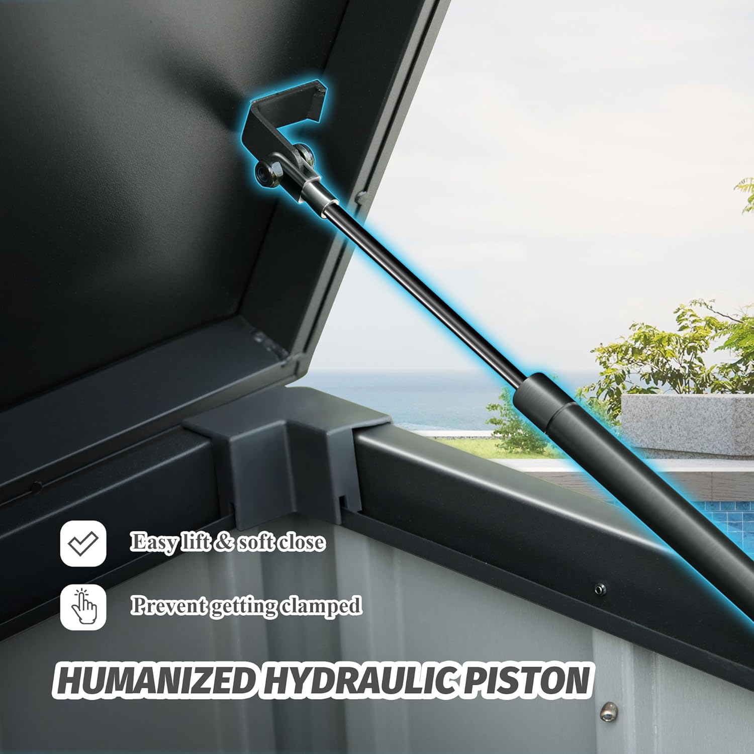 - 🌞【Humanized Hydraulic Pistons】: Easy lift and soft close mechanism allows the top completely open and shut smoothly with minimal effort-easy to use and no smashed fingers.