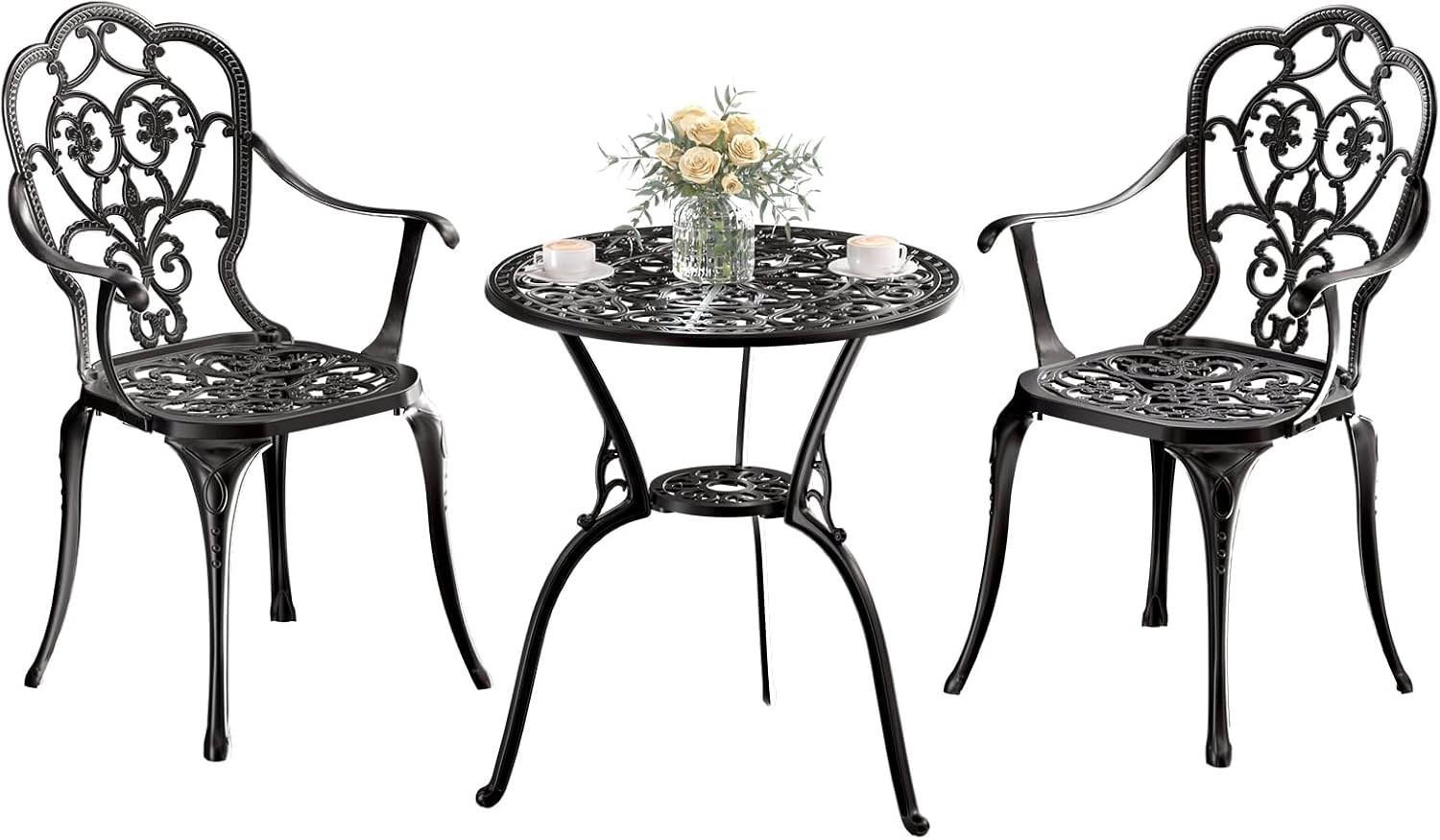 - ăDurable Cast AluminumăMade of anti-rust, weather-resistant cast aluminum, making bistro set perfect for long-term outdoor use in any climate