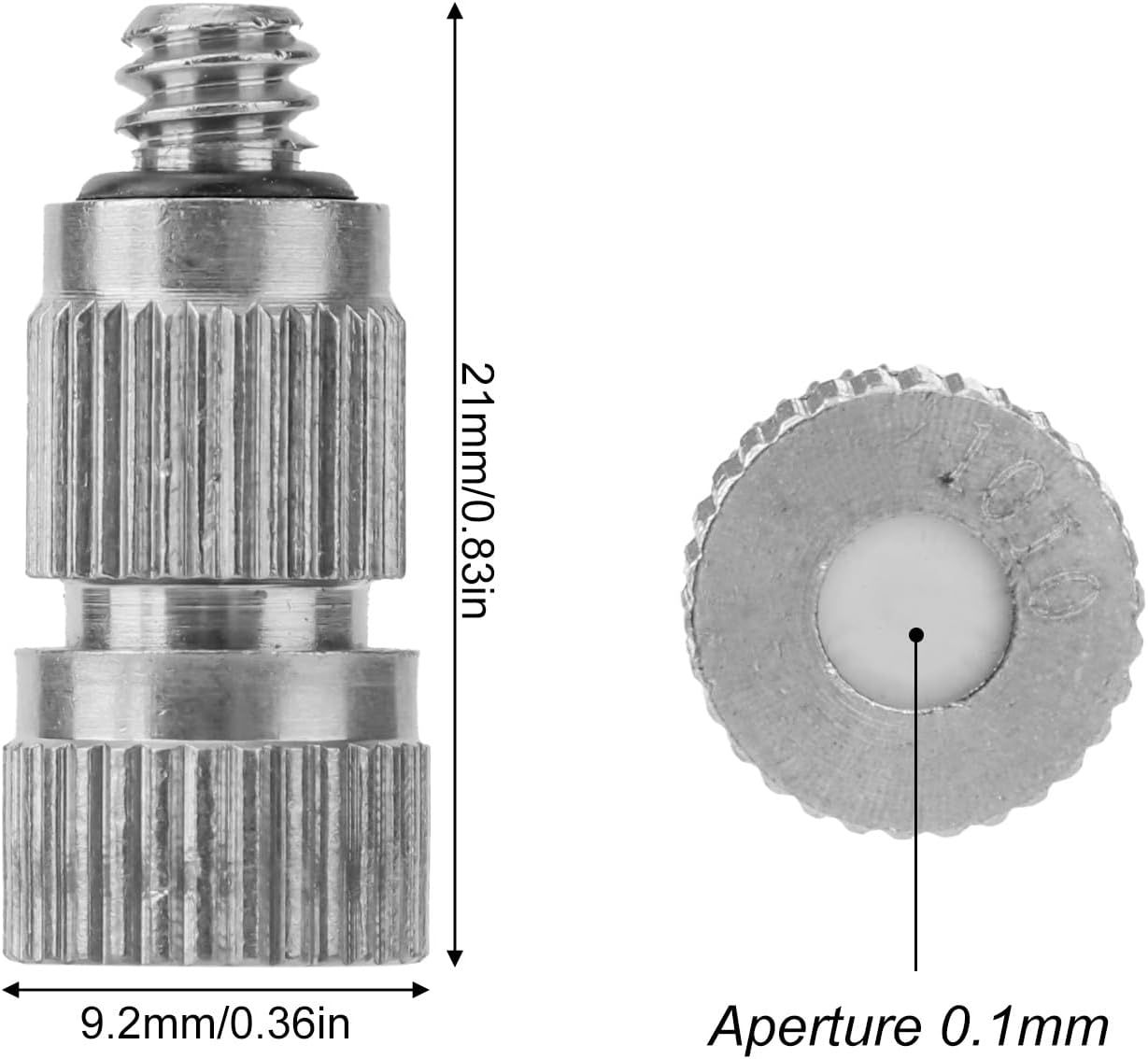 - Product Size: Each brass nozzle measures approximately 21x9.2mm/0.83x0.36in, featuring a 0.1mm orifice that delivers a fine mist with high pressure to effectively cool large areas such as patios, greenhouses, and gardens.