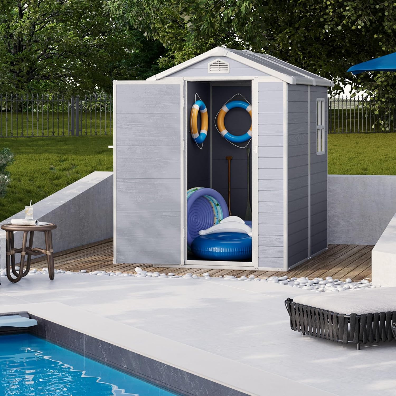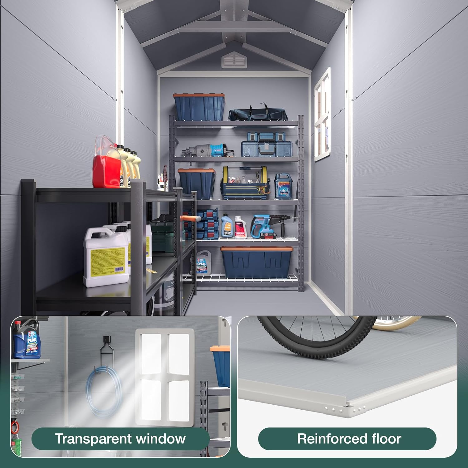 Storage Shed Plastic Outdoor Storage Shed Waterproof Container House with Lockable Door and Transparent Window for Garden, Lawn, Backyard, Patio (6x4FT)