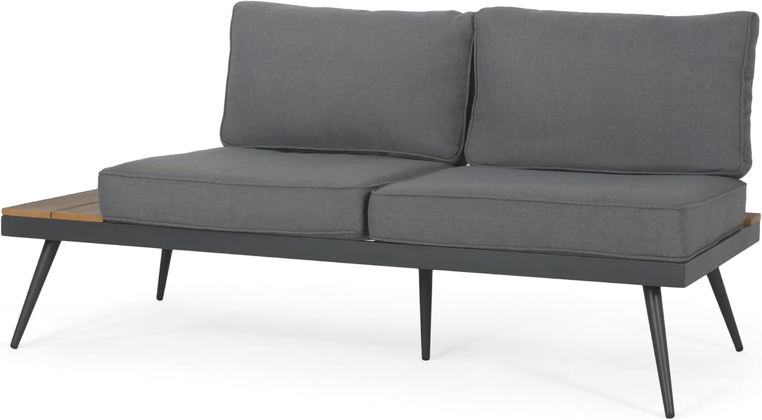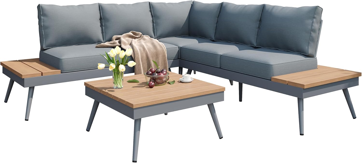 Outdoor V-Shaped 4-Piece Alum Patio Sofa Set, L-Shaped Conversation Set with Coffee Table, Aluminum Frame, Faux Wood, Outdoor Sectional Sofa Set for Garden