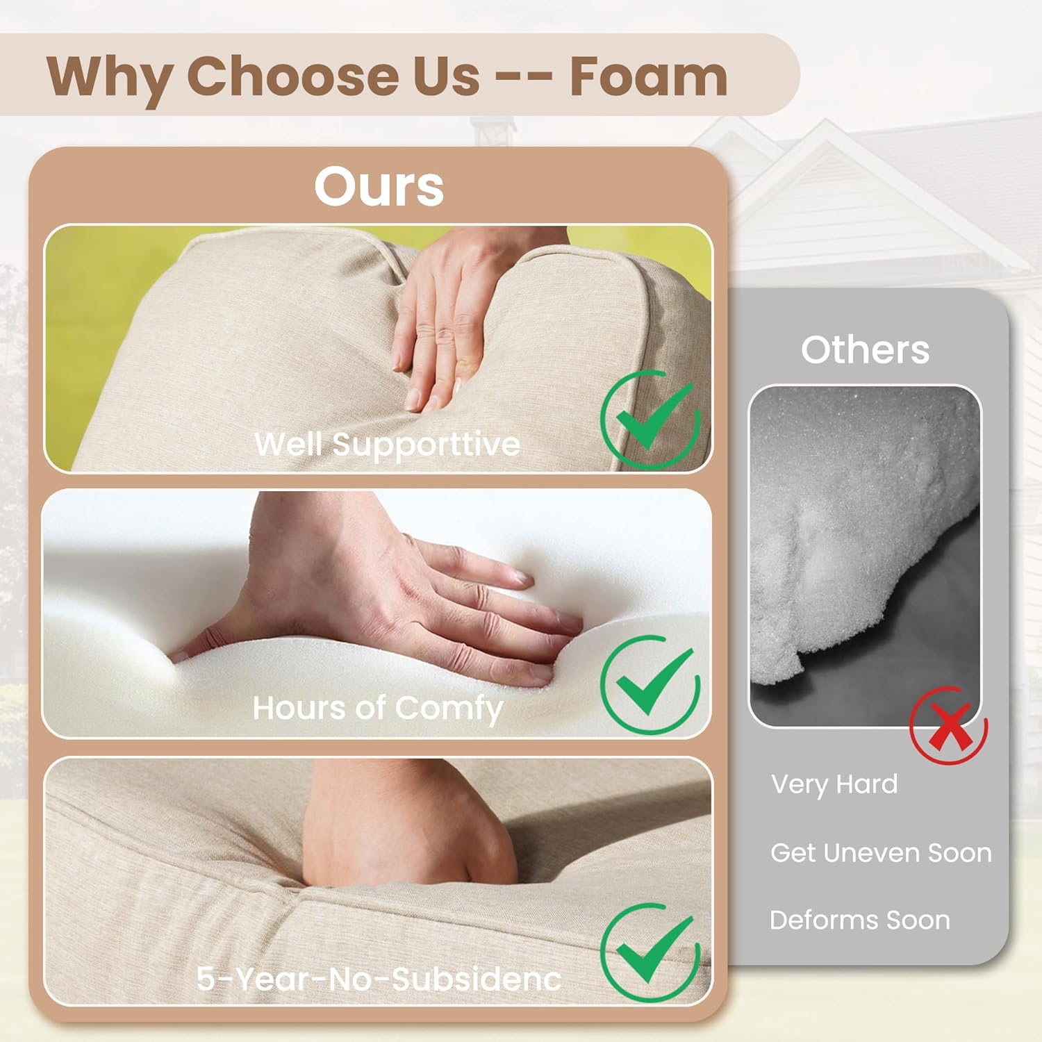 - High Density Foam &Fluffy Cotton: Selected brand new high density foam for high resilience and comfortable sitting for years. Brand new polyester cotton for fluffy back support for keeping shape for years