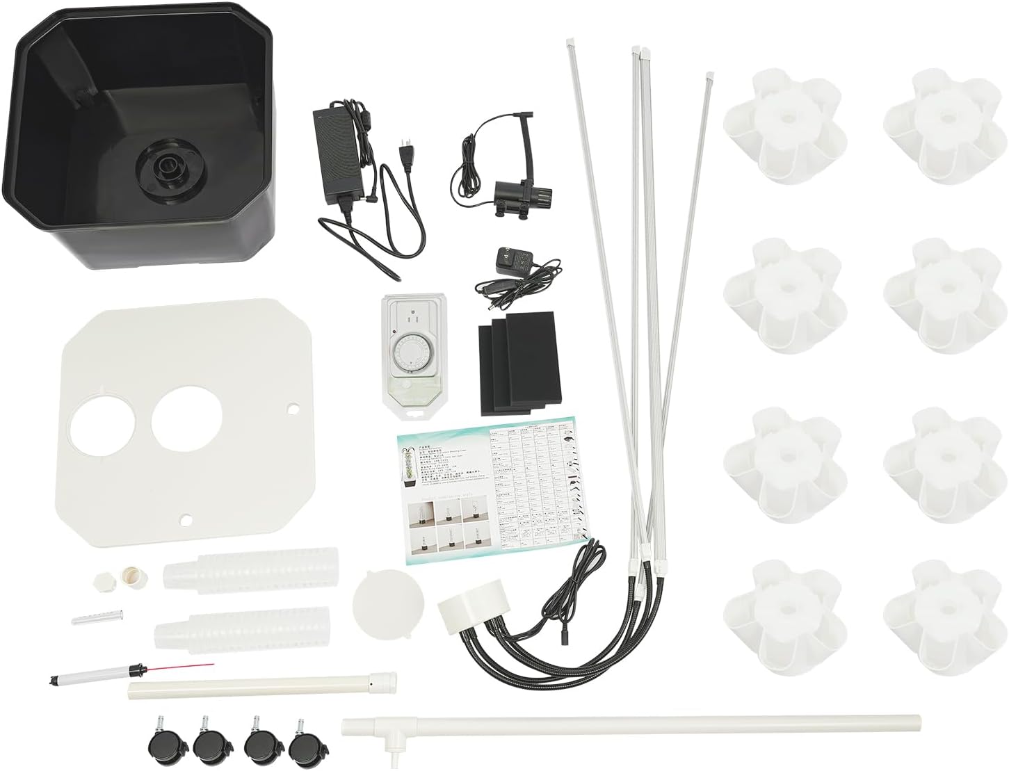 - 【AUTOMATED OPERATION & USER-FRIENDLY CONTROLS】The system runs automatically once connected to power and water, with a pump cycle of 1-minute ON / 5-minute OFF to optimize root health and resource use. A clear water level gauge enables easy monitoring, and full-spectrum LED lights support photosynthesis, suitable for all grower levels.